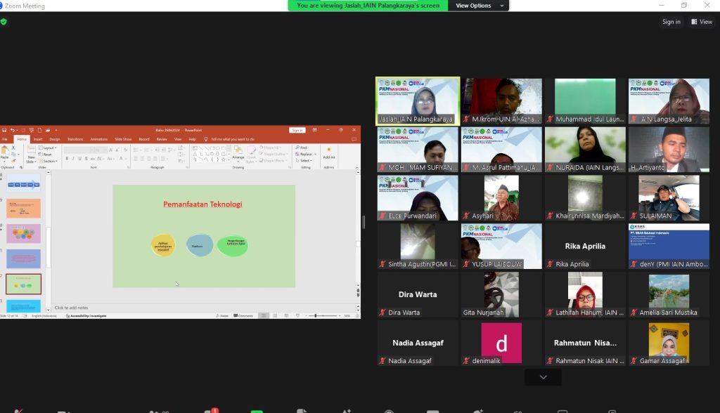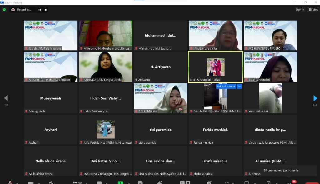 Acara dimulai pada pukul 09.00 WIB dengan moderator acara Muhammad Ikrom, M.Pd. Moderator Memperkenalkan Para Narasumber yang berjumlah 7 Orang terdiri dari: Dr. H. Artiyanto, Lc., MA. (Dosen UIN Al-Azhaar Lubuklinggau), Dr. Jasiah, M.Pd (Dosen IAIN Palangkaraya), M. Asrul Pattimahu, MA (Dosen IAIN Ambon), Mohammad Imam Sufiyanto, S.Si., S.Pd., M.Pd (Dosen IAIN Madura), Dr. Jelita, M.Pd (Dosen IAIN Langsa), Dr. Shella Monica, M.Pd (Dosen UIN Al-Azhaar Lubuklinggau), dan Elce Purwandari, M.Pd (Dosen UIN Al-Azhaar Lubuklinggau). PKM Nasional dengan tema “Penguatan Moderasi Beragama untuk Meningkatkan Social Wellbeing dan Mencegah Perilaku Bullying” Melibatkan 5 Perguruan Tinggi Keagamaan Islam di Indonesia Antara Lain: Universitas Islam Nusantara Al-Azhaar Lubuklinggau Sumatera Selatan, IAIN Palangkaraya Kalimantan Tengah, IAIN Ambon Maluku, IAIN Madura Jawa Timur, dan IAIN Langsa Aceh. Setelah Perkenalan para narasumber kegiatan dilanjutkan pada sesi utama yaitu pemaparan materi.